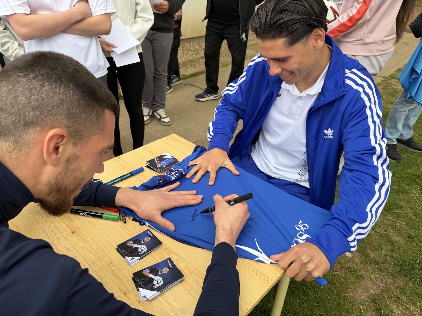 A gyermekek rendkívül felkészülten fogadták játékosainkat a program során, amely a megszokott kérdezz-felelekkel indult. Bence és Alen megpróbáltak a tanulók összes kérdésére választ adni, majd következhetett a fiatalok által rendkívül várt dedikálás is.